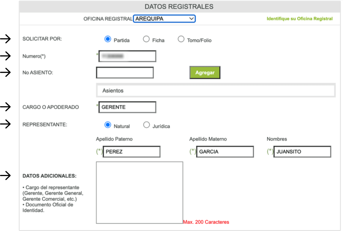 Número: Ingresa el número de partida de la empresa en registros públicos. Si no cuenta con este dato puedes encontrarlo en tu ficha RUC.