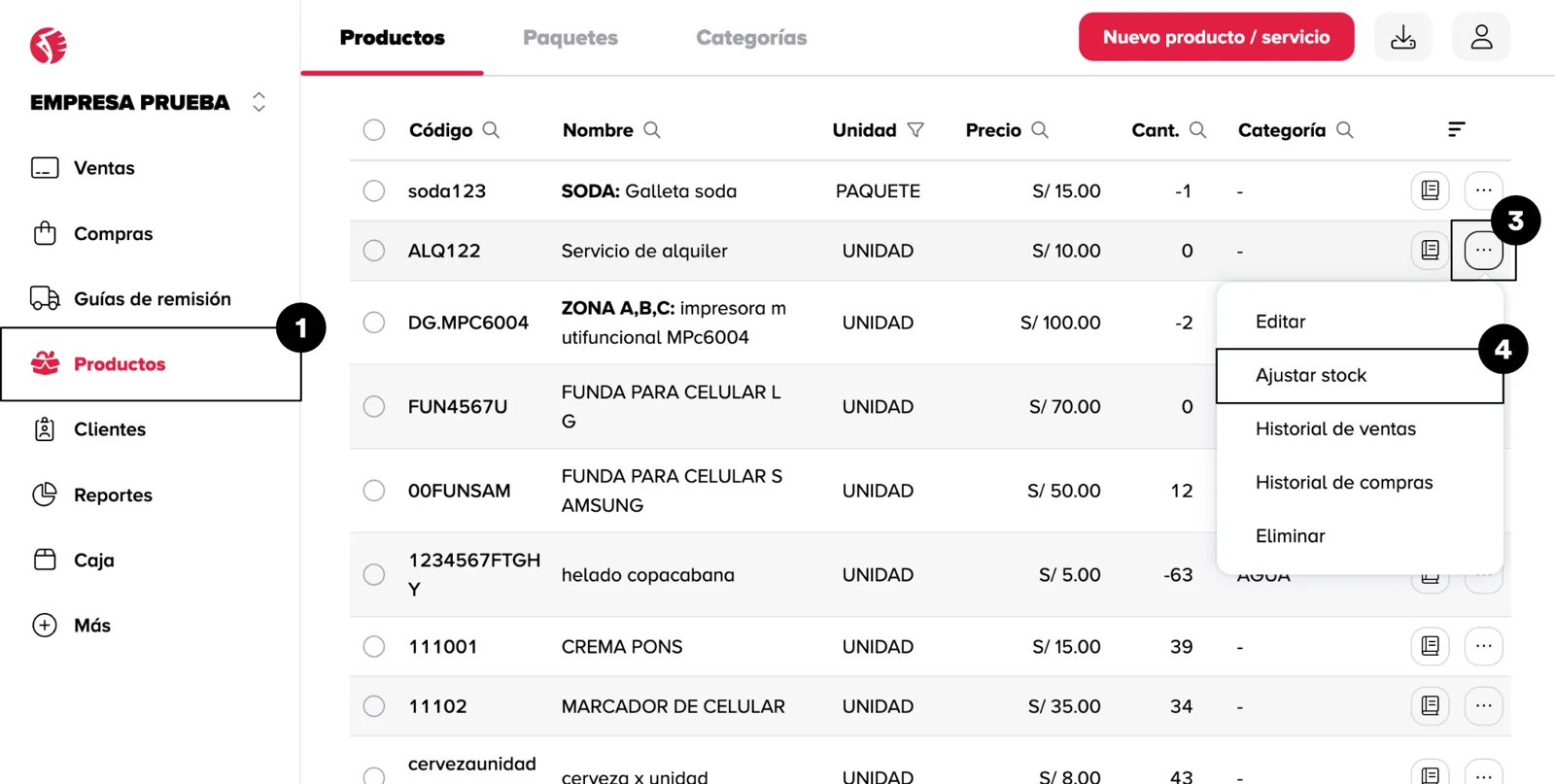 - Haz clic en el módulo de Productos en la barra lateral.