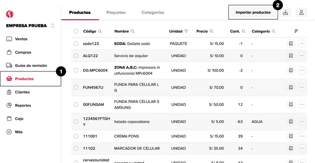- Unidad: Nombre de la unidad de medida del producto (Ejm: DOCENA).
