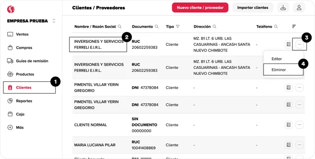 Ubica al cliente que deseas eliminar.