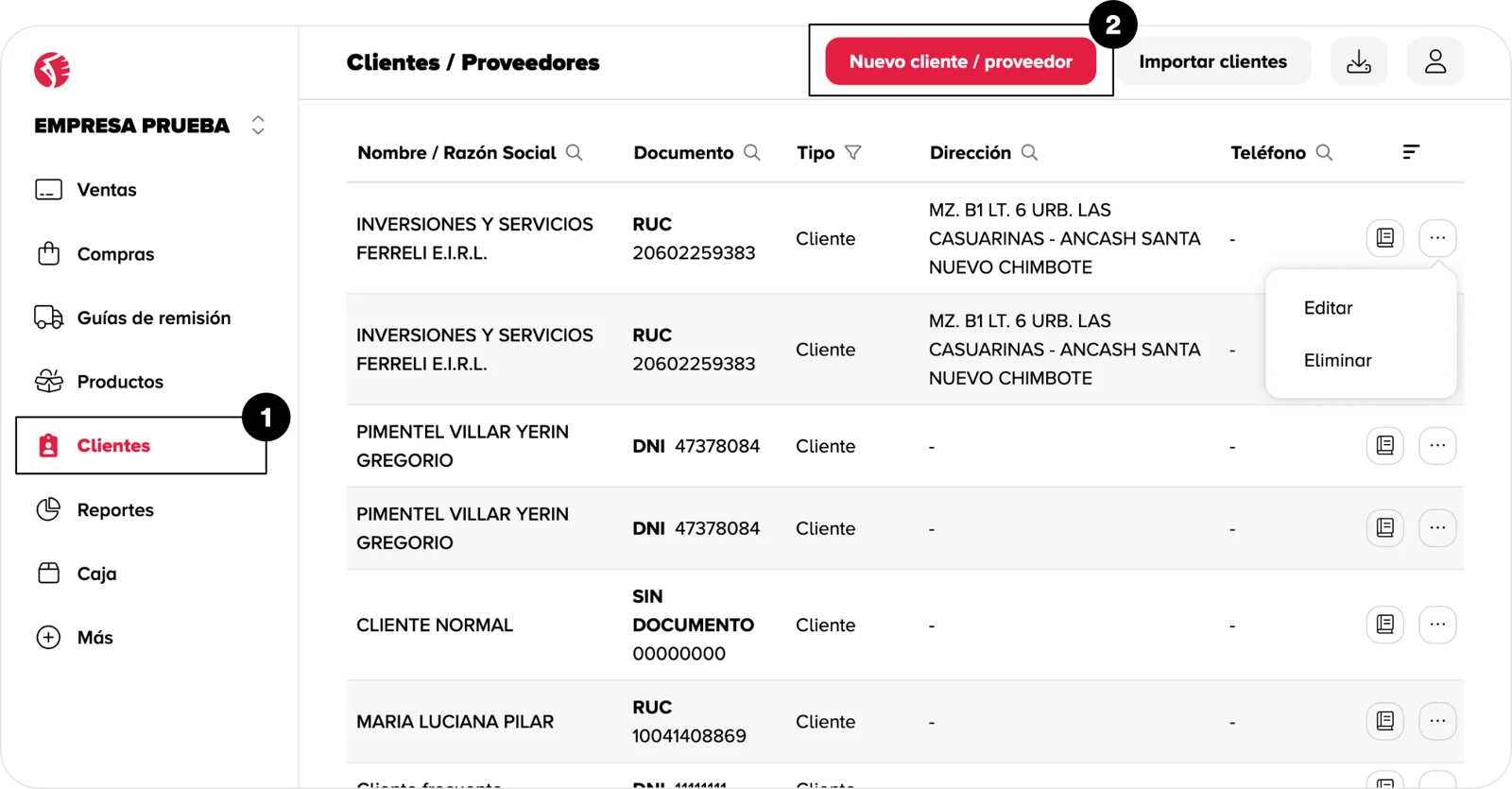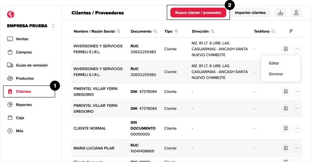 Registra fácilmente clientes y proveedores para emitir comprobantes, lleva control de contactos y organiza mejor tu información comercial.