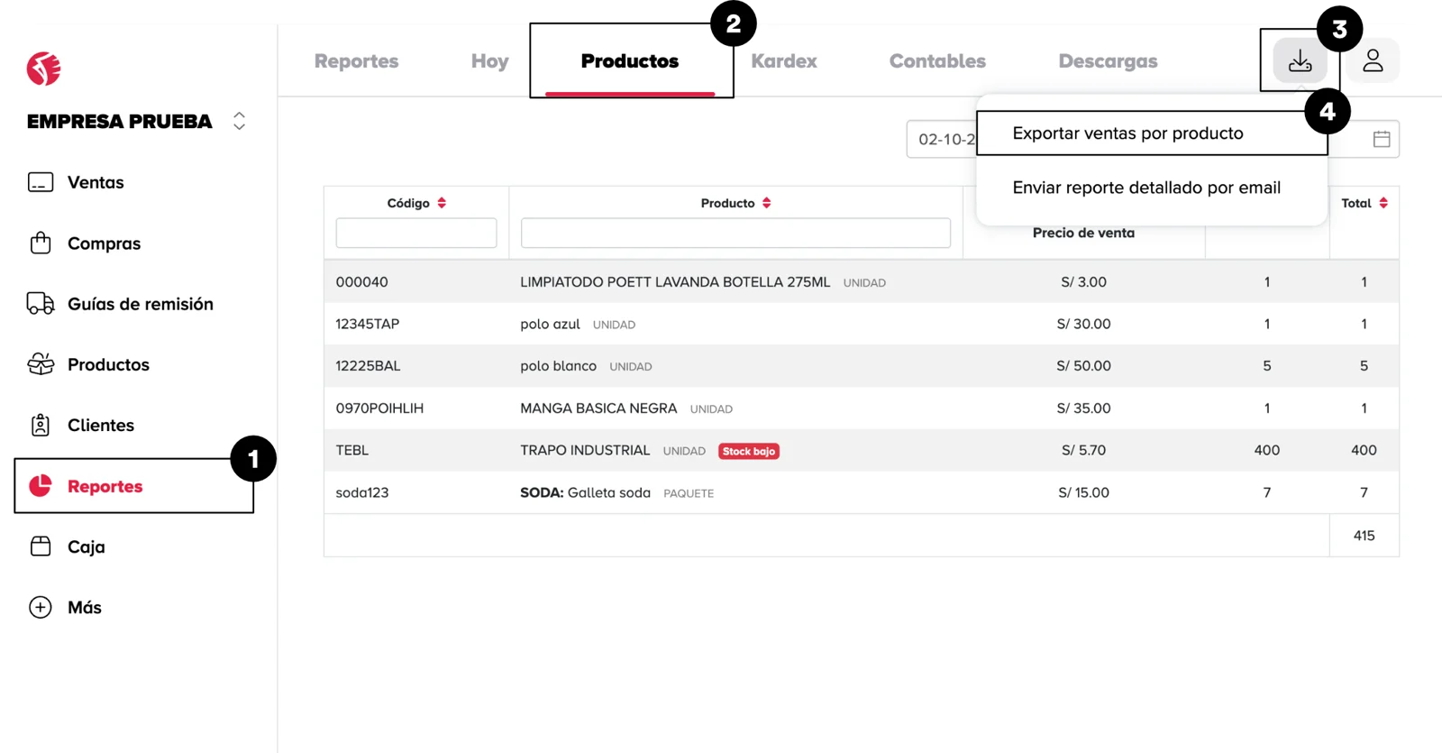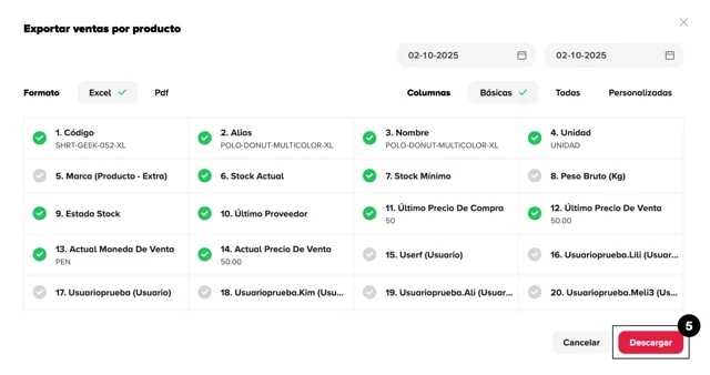 Por último, haz clic en el icono de la 📥 flecha hacia abajo para descargar tu reporte.