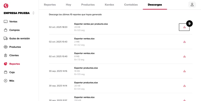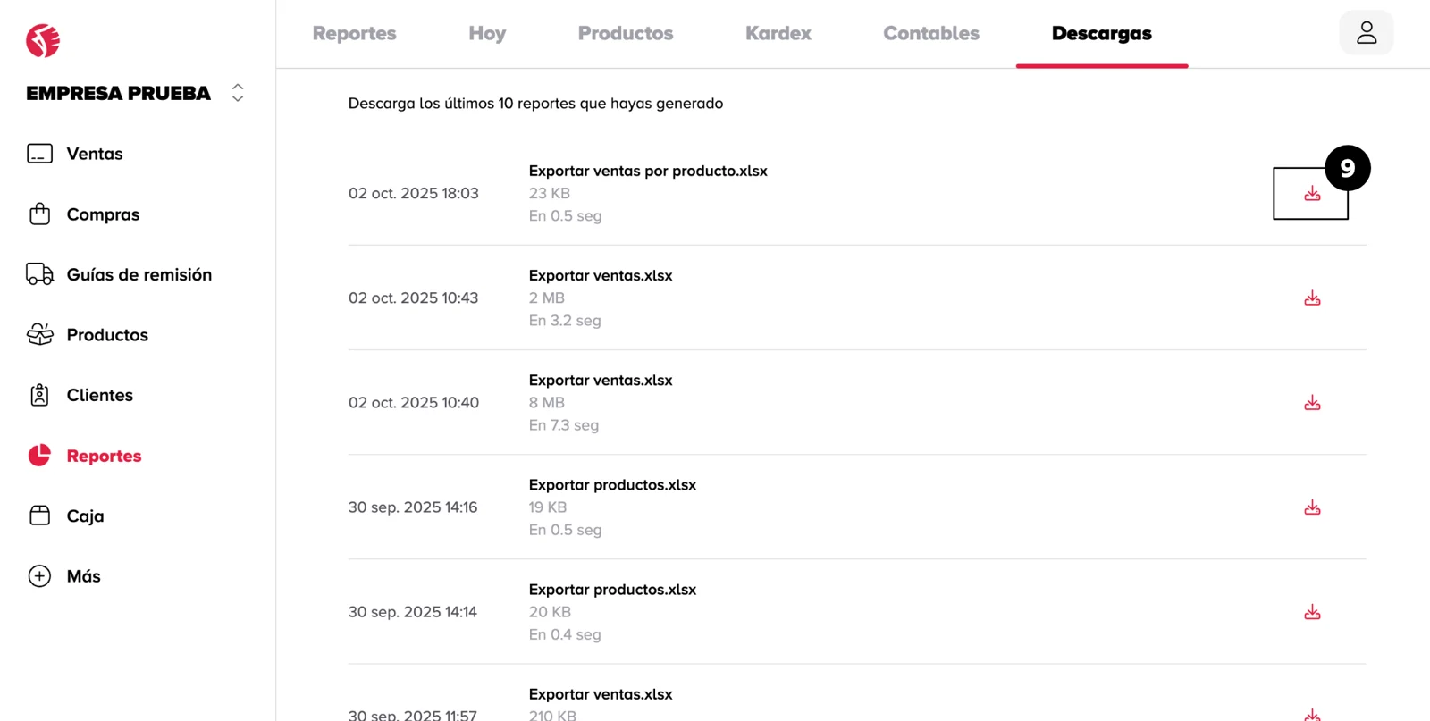 Automáticamente, serás dirigido a la pestaña Descargas dentro del módulo de Reportes.