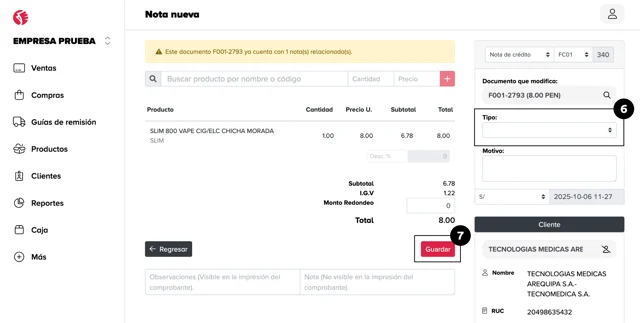 En la ventana emergente, los productos vinculados a la nota se cargarán automáticamente.