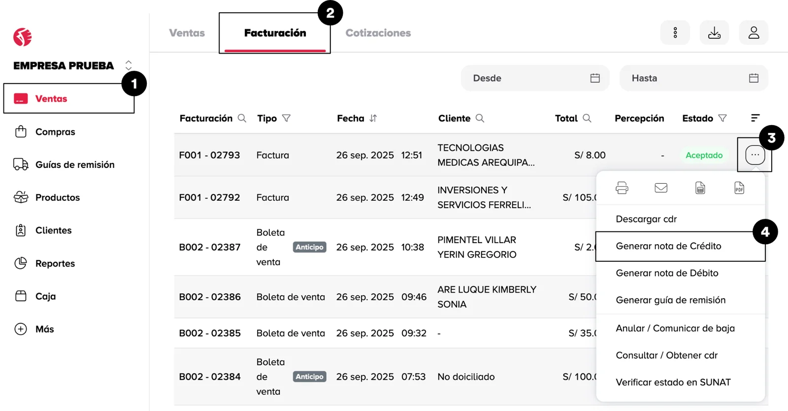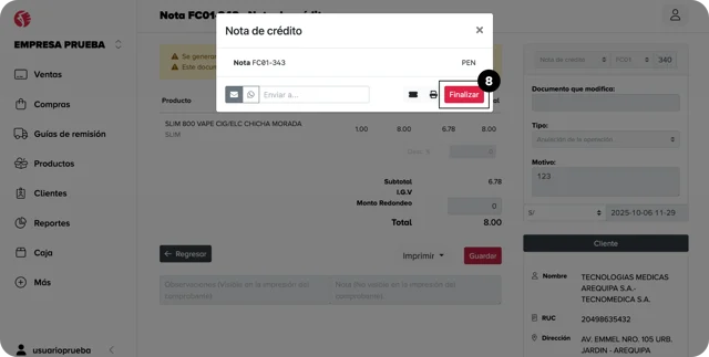 Finalmente, podrás enviarla por correo, WhatsApp o imprimirla en formato ticket o A4. Si no necesitas realizar ninguna de estas acciones, simplemente haz clic en Finalizar.