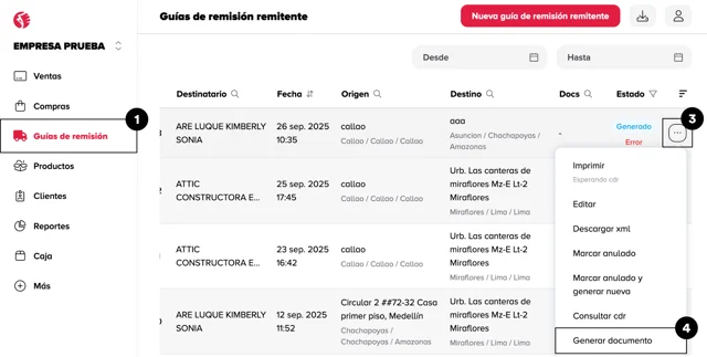 Cómo generar un documento electrónico desde una guía de remisión