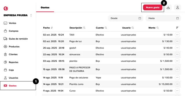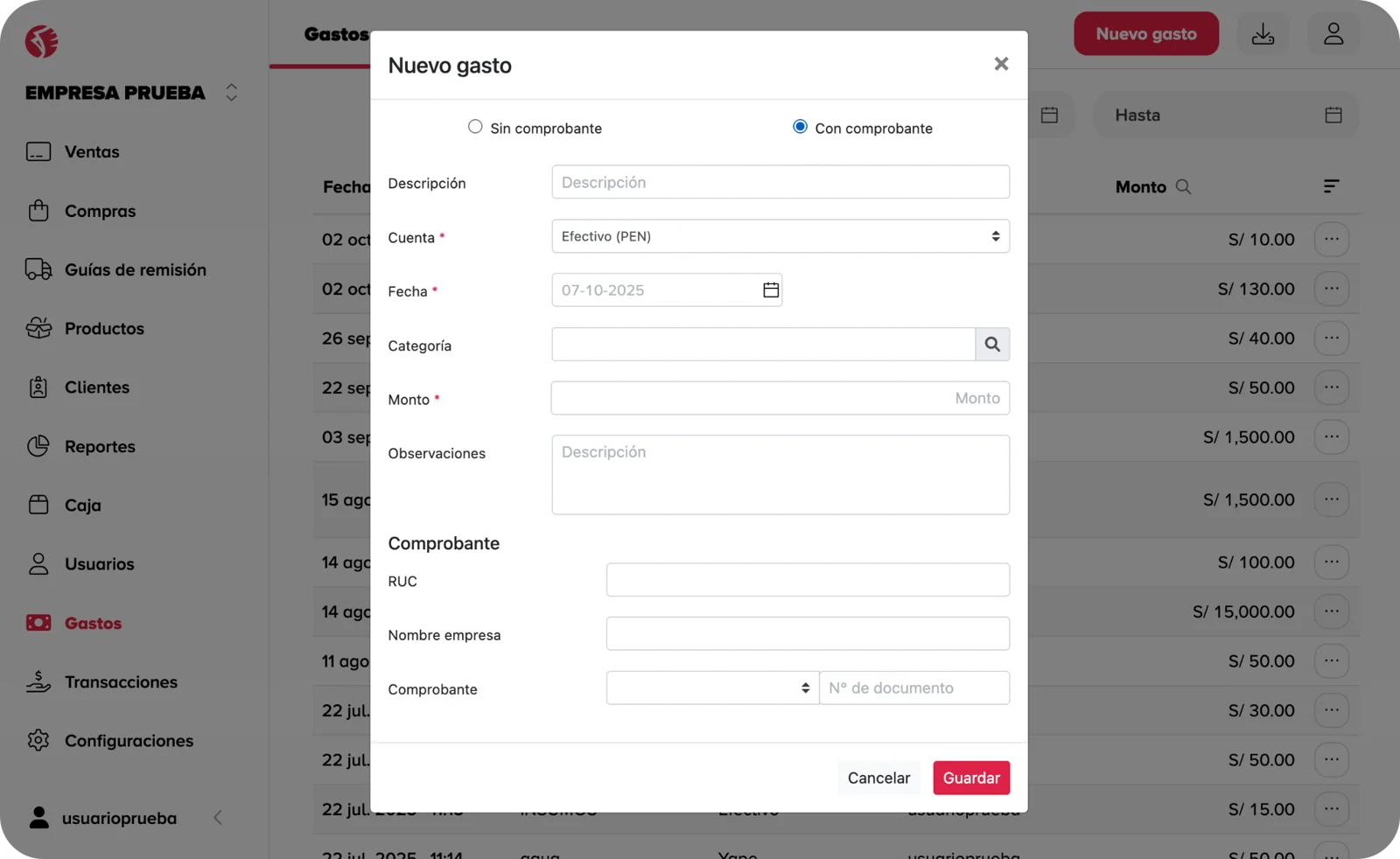 - Completa los campos requeridos y haz clic en Guardar para agregar el gasto.