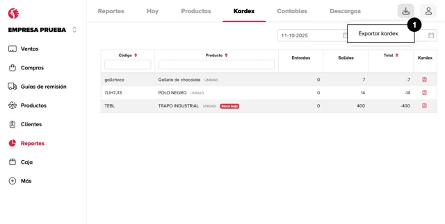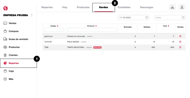- Haz clic en la pestaña kardex, ubicado en la parte superior de tu pantalla.