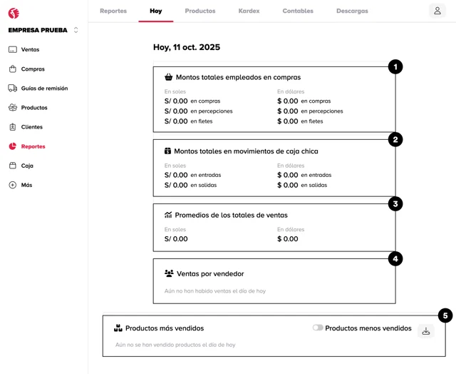 Los reportes del día te permiten conocer en tiempo real cómo va tu negocio, con información clara sobre tus compras, ventas, caja chica y desempeño de los vendedores.