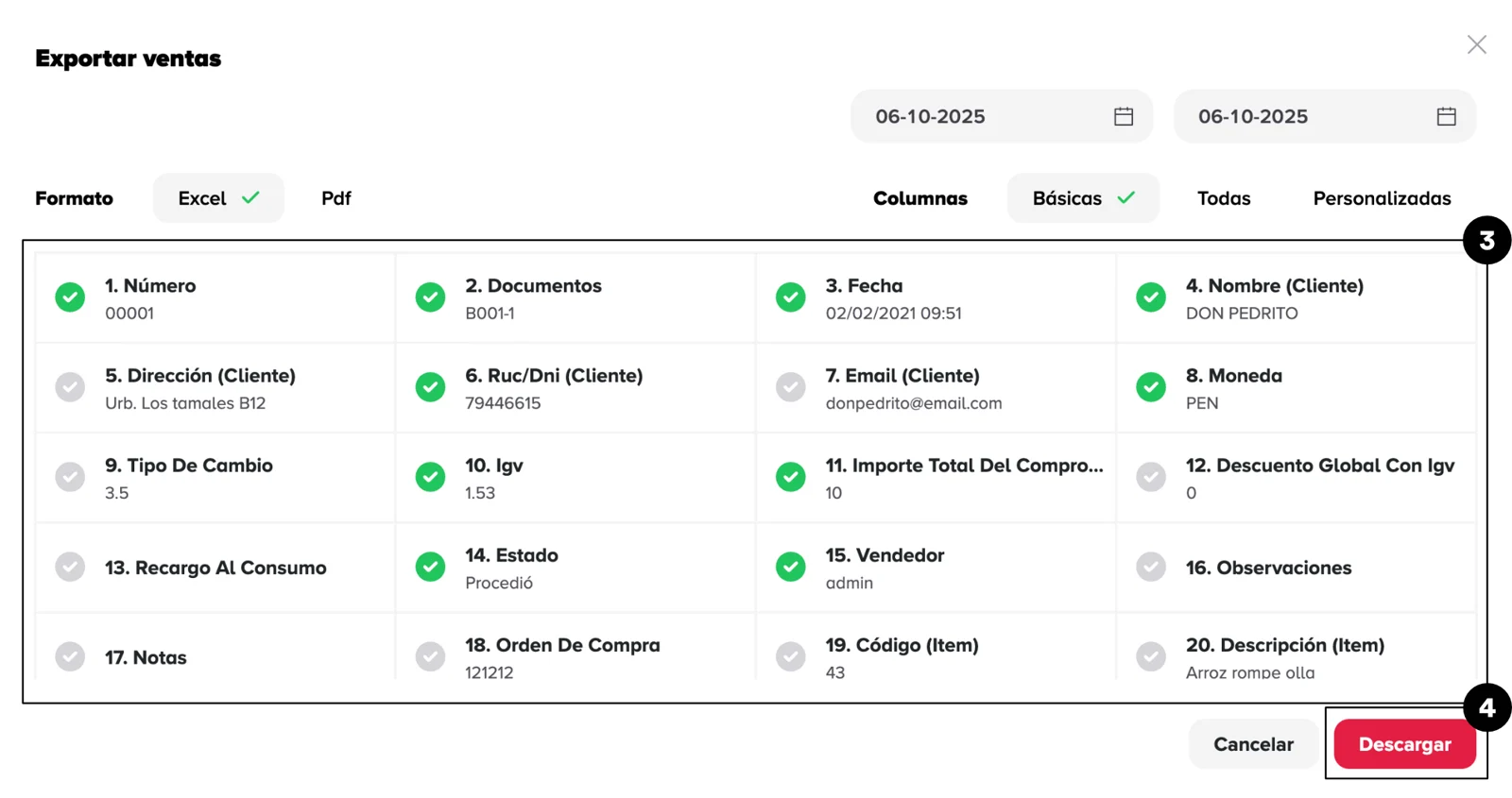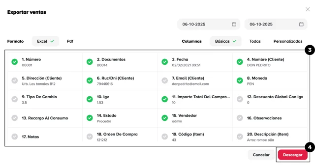- Marca o desmarca los elementos que deseas incluir en la descarga.