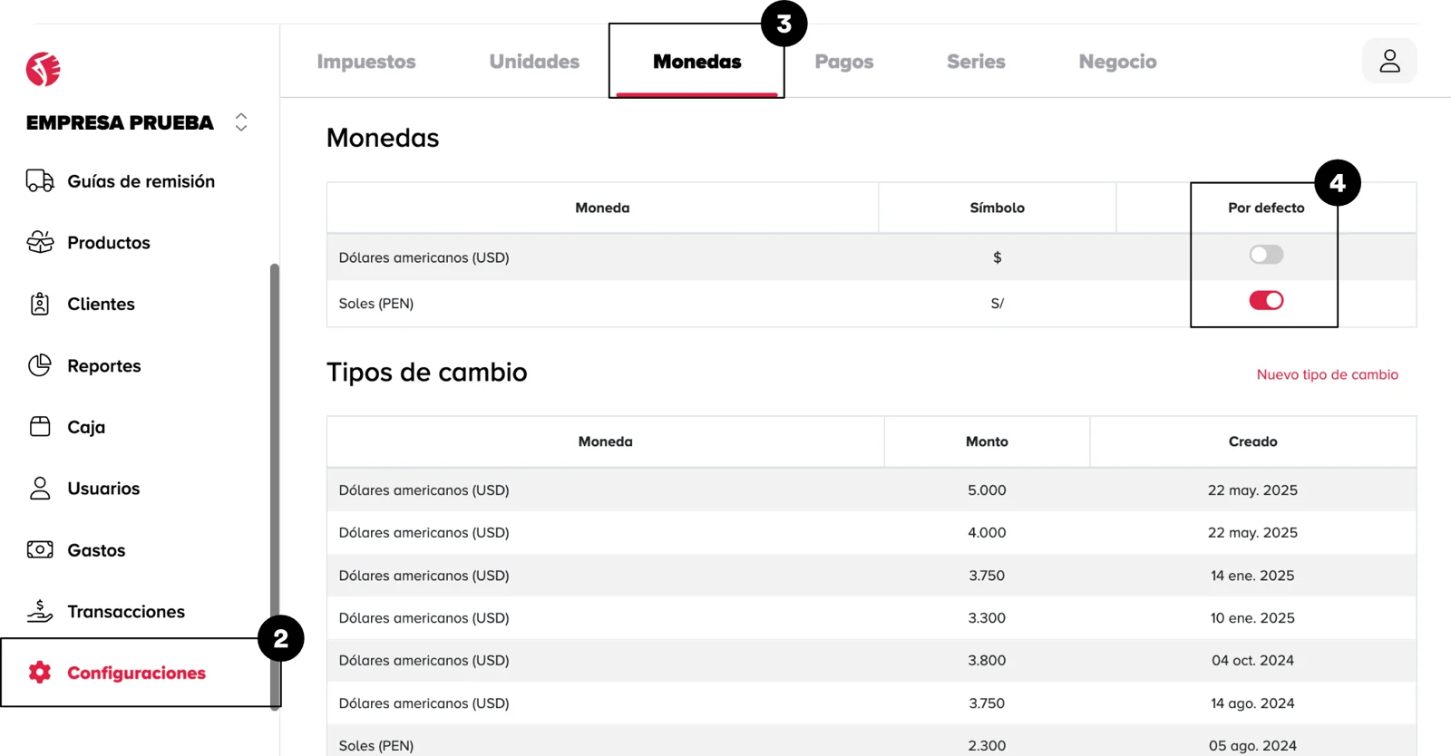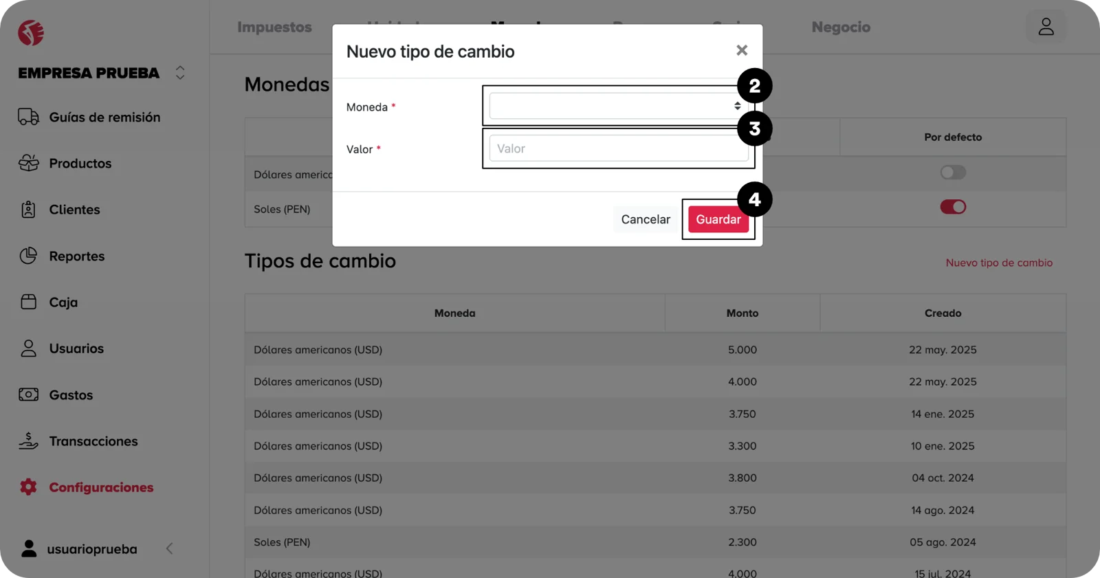 En caso de vender o comprar en dólares, el tipo de cambio se debe registrar